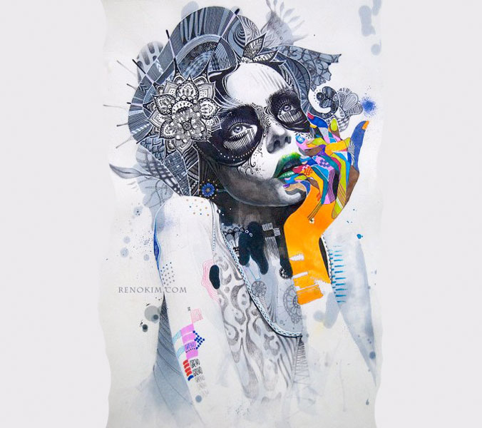Lindas ilustrações de Minjae Lee, que chegam a parecer feitas com técnicas digitais, mas na verdade são feitas de canetas, lápis e tintas acrílicas.